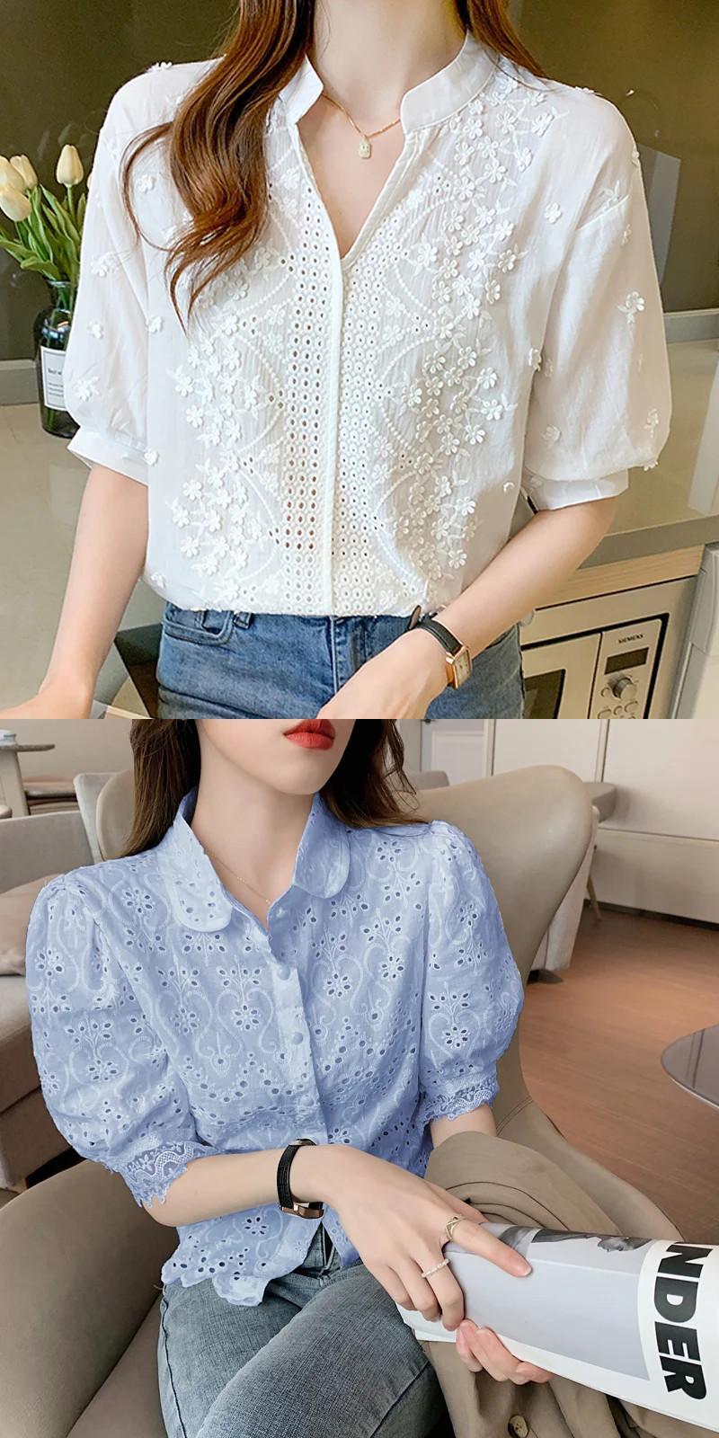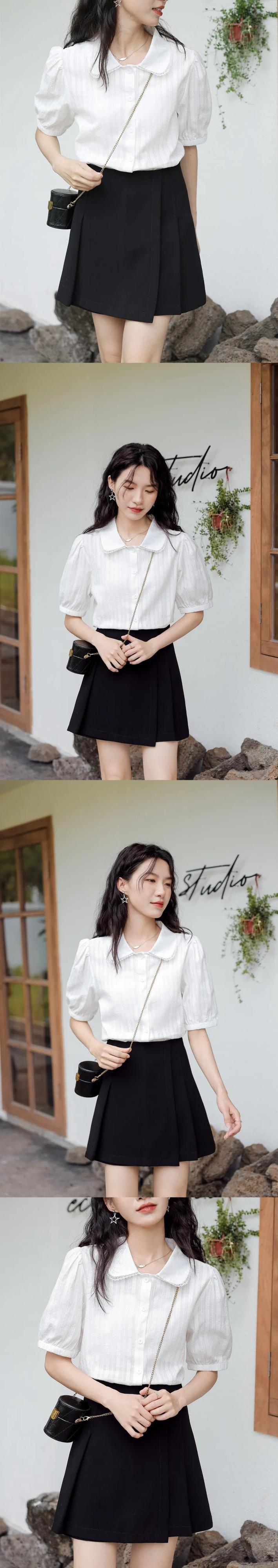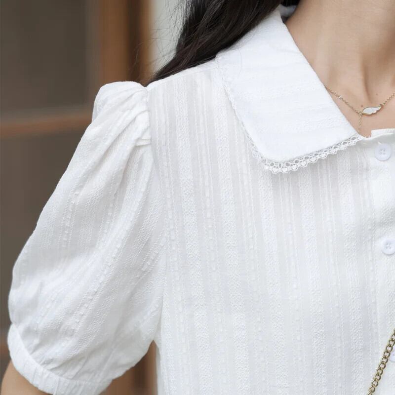 送料無料 甘いヴィンテージシャツピーターパン襟フレンチスタイルショートパフスリーブシャツ夏の白ブラウス女性トップス服 27078 ホワイト 大人ガーリー スウィート キュート カジュアル サマー 夏物 ビンテージ AE665656617433413938