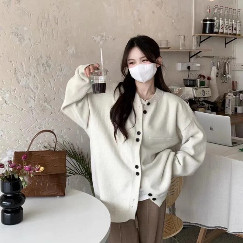 送料無料 秋冬 2023 ソリッドニットカーディガン女性のセータースタイルルーズ O ネックグレーニット 29057 オータム 秋物 ウィンター 冬物 Oネック ソリッドカラー AE665656659162856170