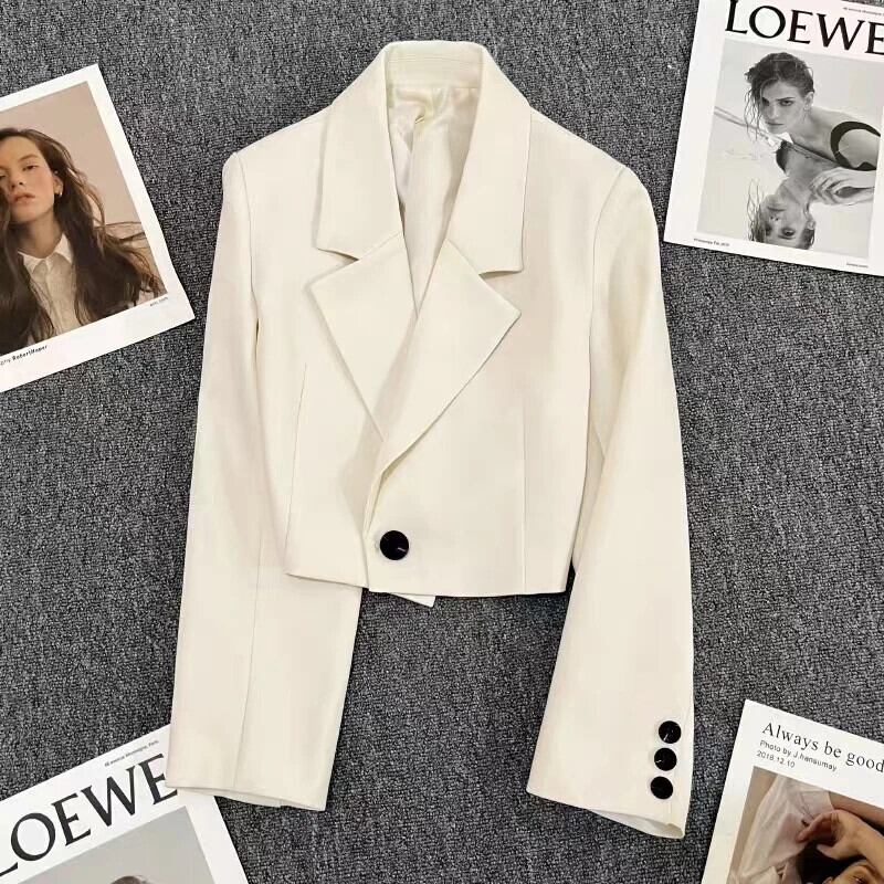 送料無料 クロップド長袖ジャケットスーツコート女性秋オフィスレディ固体シンプルなシングルボタン生き抜くオールマッチ 29356 ロング オータム 秋物 ソリッドカラー 会社 学校 通勤や通学にも AE665656647781314927