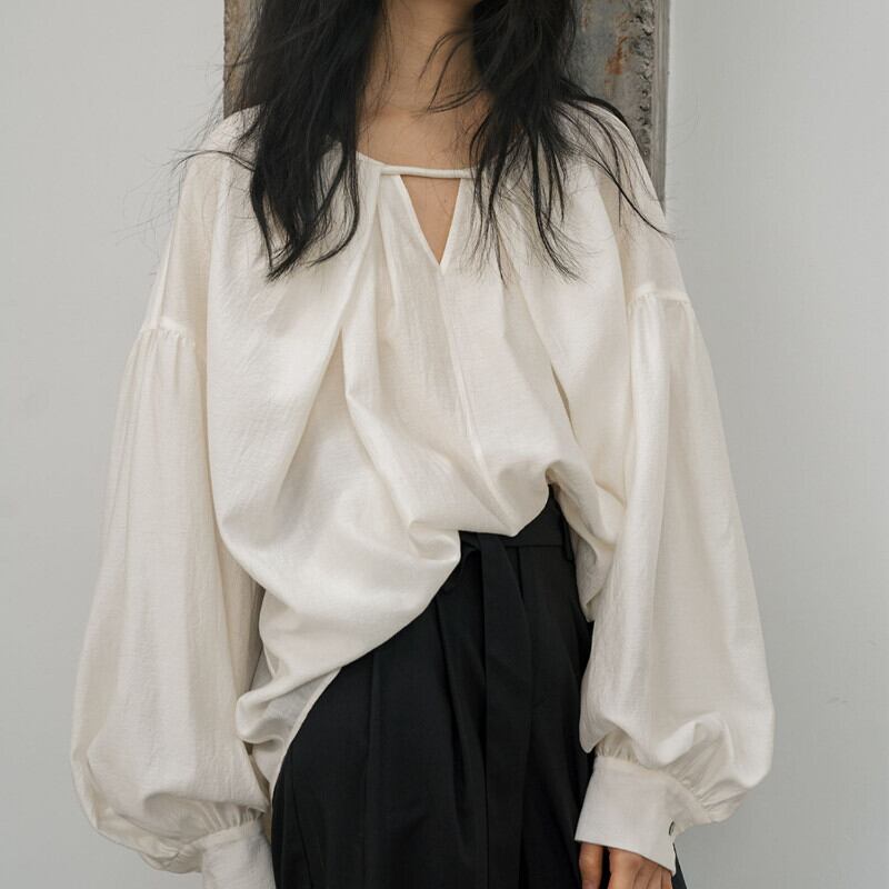 送料無料 秋の白シャツフレンチ V ネックランタンスリーブシャツオフィスレディトップス春ブラウストップ女性 27848 ホワイト スプリング 春物 オータム 秋物 Vネック 会社 学校 通勤や通学にも AE665656654637679855
