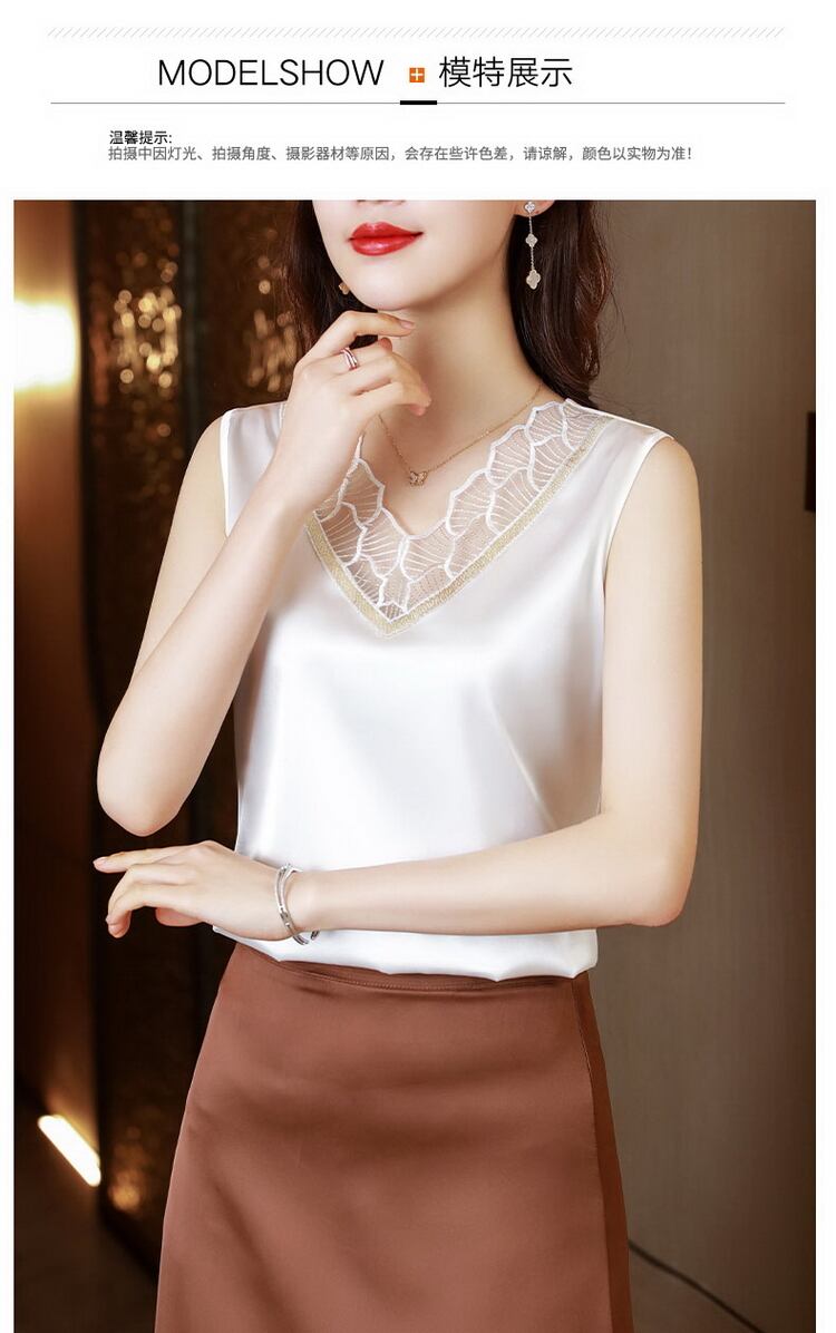 送料無料 夏のレースサテンブラウス女性 2023 V ネックルーズオフィスレディシャツノースリーブ中空アウトシルクトップス 25220 サマー 夏物 Vネック 会社 学校 通勤や通学にも AE665656628659909434 | 女性の為の通販サイト-fashion navi