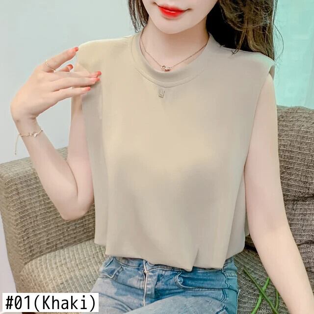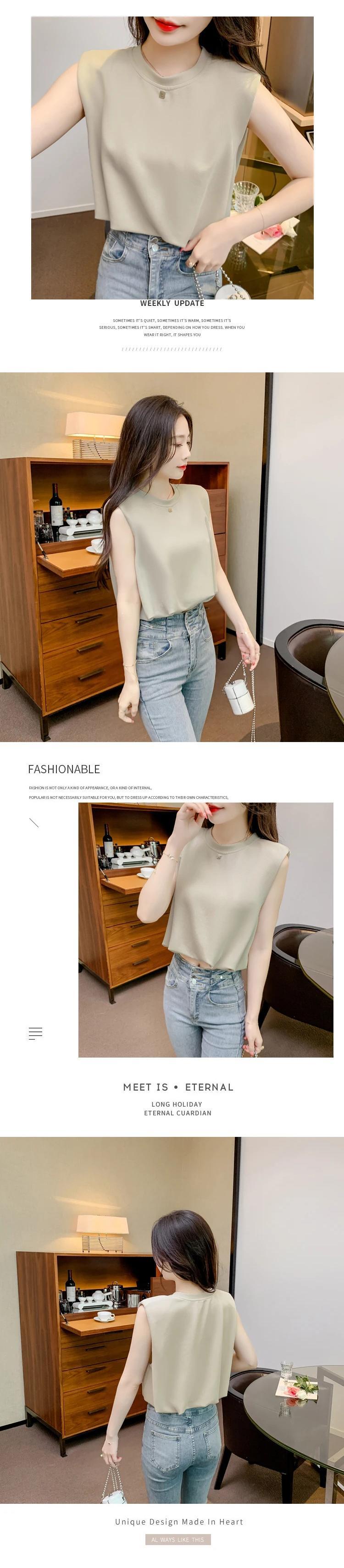 送料無料 夏のノースリーブ女性ブラウスショートクロップトップ固体シャツ 2023 O ネックシック 26082 サマー 夏物 Oネック ソリッドカラー AE665656643285205765