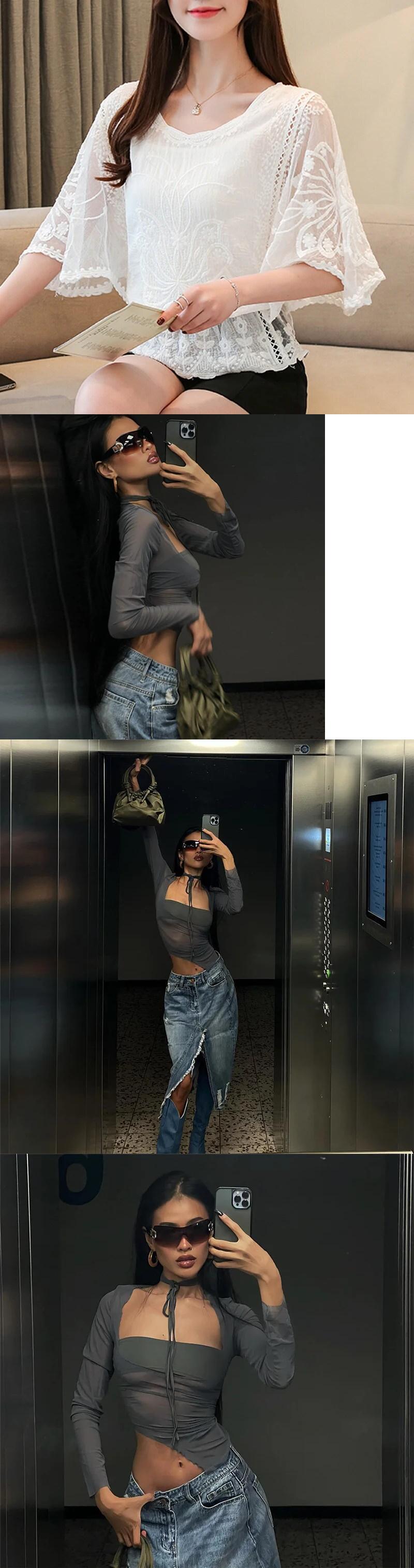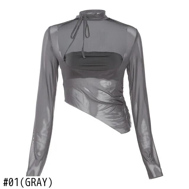 送料無料 Y2k ストリートスリム Tシャツ春のセクシーなシャツの女性 2023 ショートトップス長袖スクエアネックスリムメッシュ Tシャツ 26243 ロング スプリング 春物 スクウェア AE665656635777653331