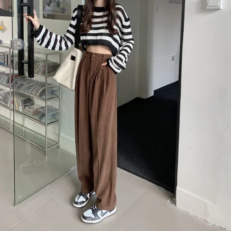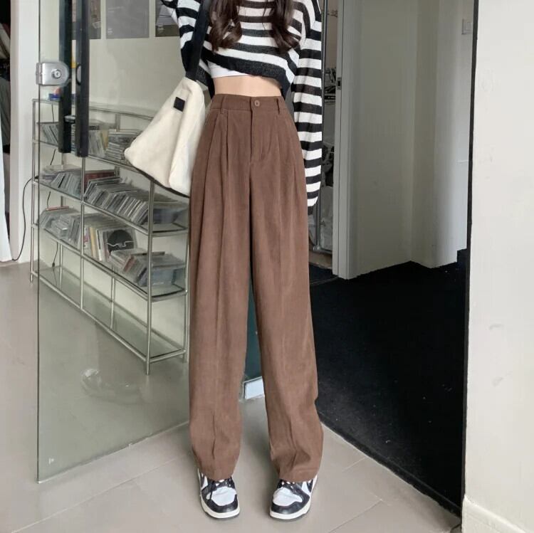 送料無料 女性ウエストルーズフィットワイドレッグパンツ秋冬コーデュロイストレートパンツオフィスレディズボン 29096 オータム 秋物 ウィンター 冬物 ワイドパンツ 会社 学校 通勤や通学にも AE665656651406382825