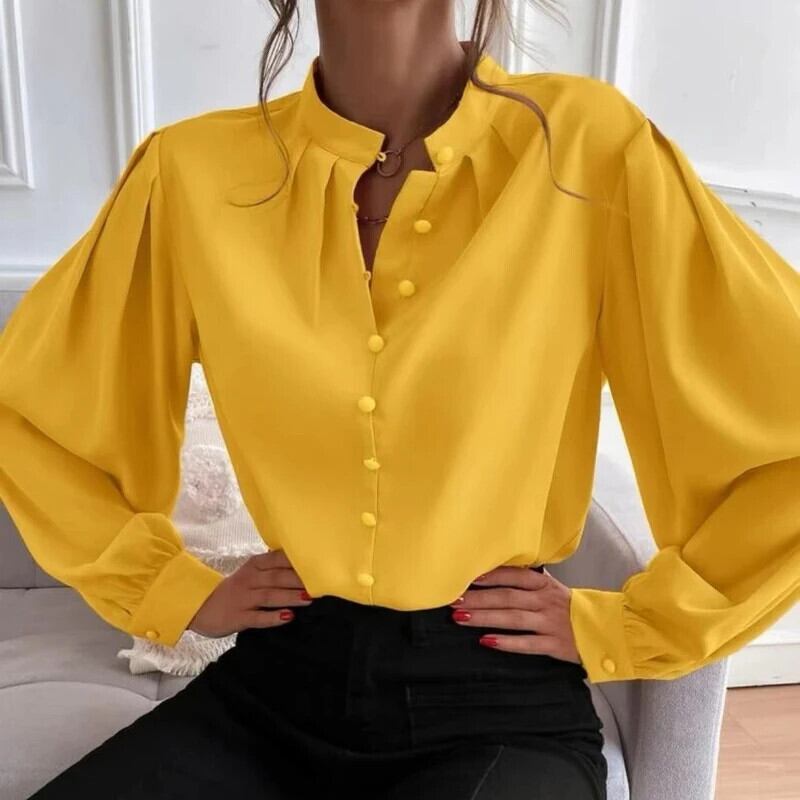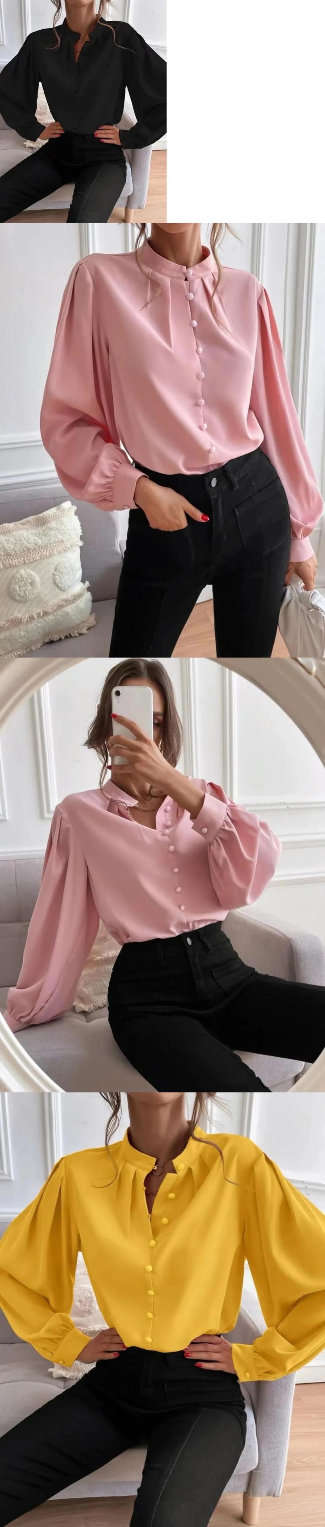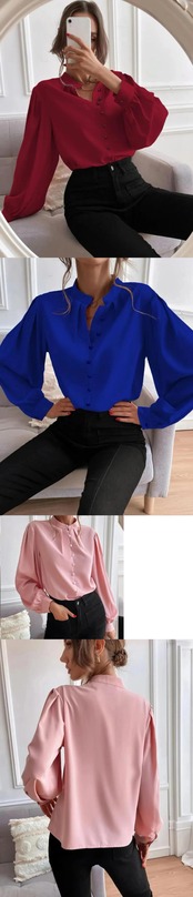 送料無料 シングルブレストオフィスレディシャツ春の女性長袖ルーズトップスヴィンテージ固体ターンダウン襟ブラウス 23018 ロング スプリング 春物 ソリッドカラー ビンテージ 会社 学校 通勤や通学にも AE665656640885291989