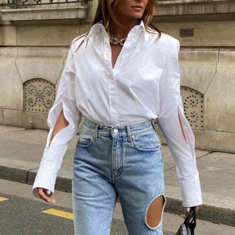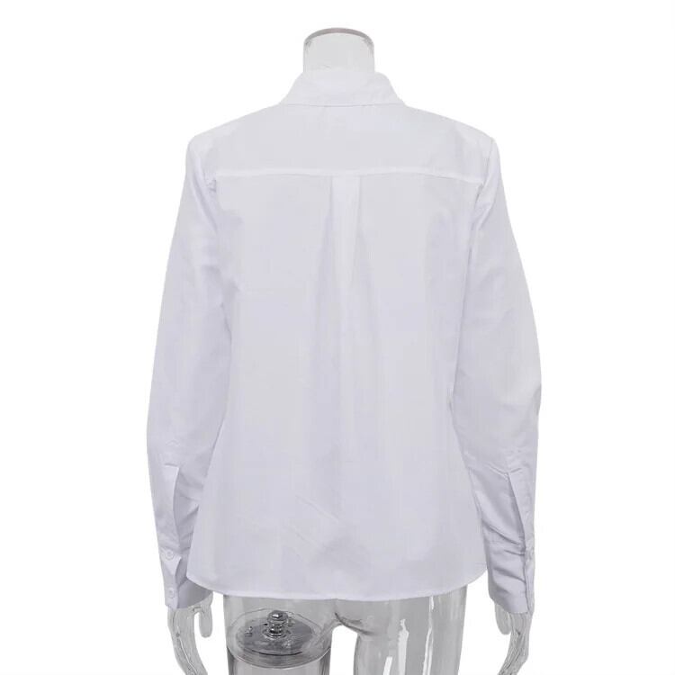 送料無料 長袖シャツオフィスレディ綿ブラウス 2023 秋ルーズトップス女性白シャツ服 28209 ロング ホワイト コットン オータム 秋物 会社 学校 通勤や通学にも AE665656680844246146