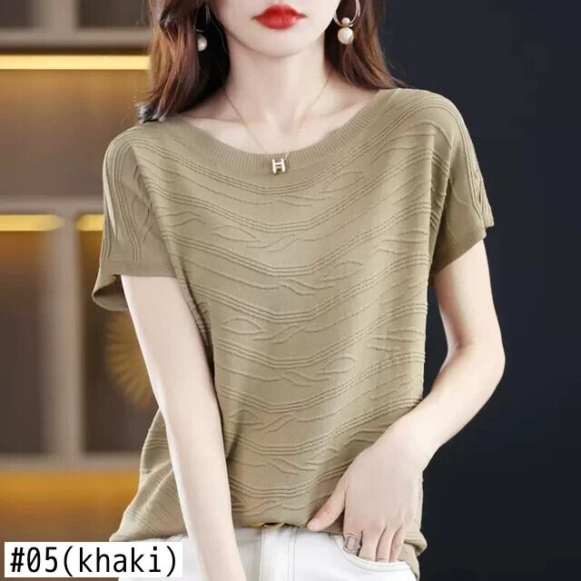 送料無料 2023 女性半袖ニットシャツとブラウス夏 O ネックストライプトップススタイリッシュ 26617 ショート ハーフスリーブ サマー 夏物 Oネック AE665656682737716447