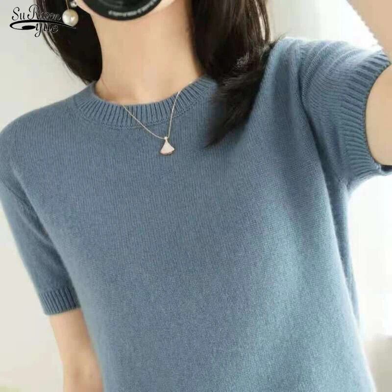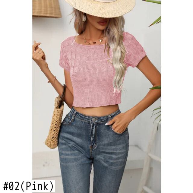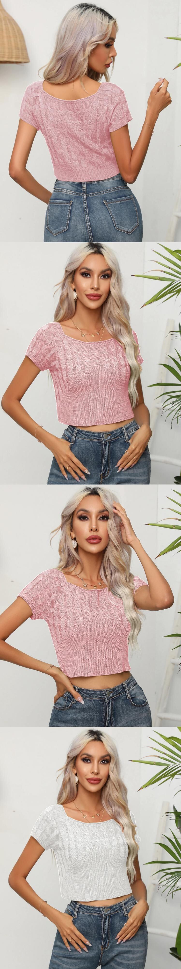 送料無料 女性クロップトップシャツ 2023 夏ニットシャツ半袖スクエアカラーブラウスショートトップスルーズセーター 26401 ハーフスリーブ サマー 夏物 スクウェア AE66565665666541313