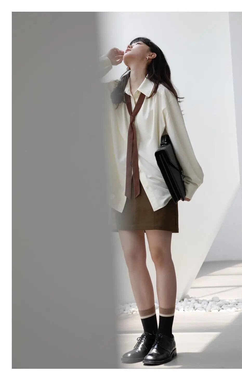 送料無料 スタイルネクタイ長袖シャツヴィンテージ女性ブラウス特大原宿シックなベーシックルーズレトロトップス 22875 ロング かわいい ビンテージ AE665656674083600094