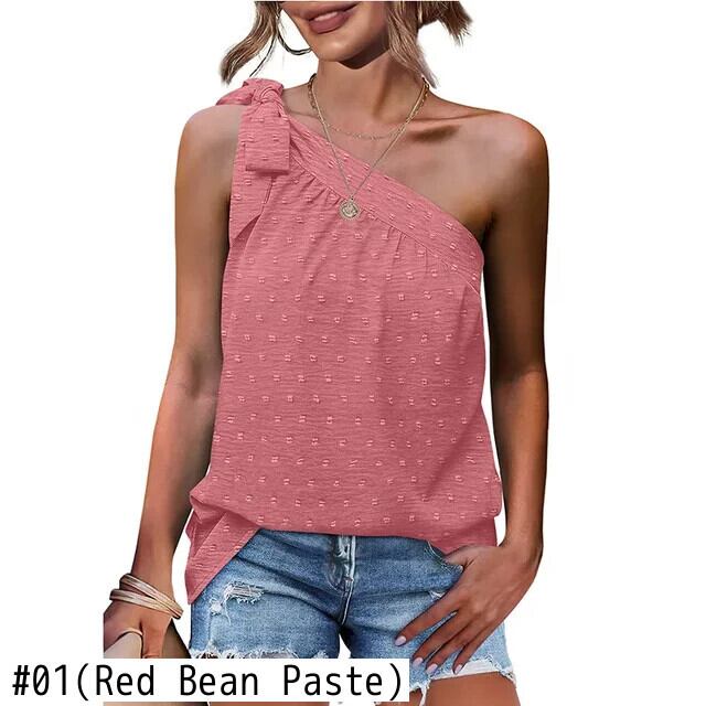 送料無料 ノースリーブシフォンベスト甘い弓タンクトップ女性斜め肩ルーズ 2023 夏服 25192 リボン 大人ガーリー スウィート キュート カジュアル サマー 夏物 AE665656693313373486