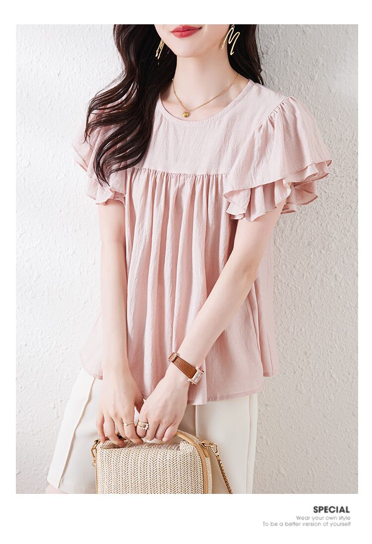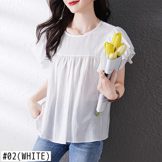 送料無料 2023 ルーズホワイトトップス夏レイヤードフリル半袖ブラウスシフォンシャツ女性 27151 ショート レッド ハーフスリーブ サマー 夏物 AE665656653821295956