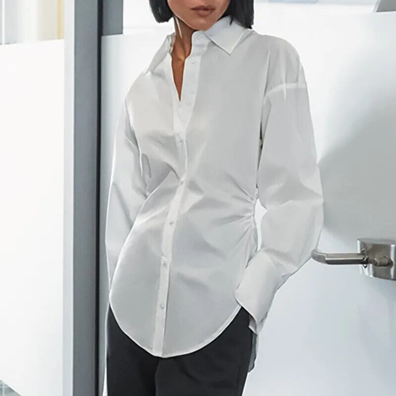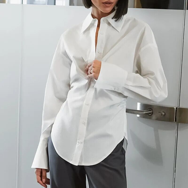送料無料 2023 長袖固体白ブラウスオフィスレディターンダウン襟服スリムフィットトップス倍シャツ女性秋 29368 ロング ホワイト オータム 秋物 ソリッドカラー 会社 学校 通勤や通学にも AE665656654636598523