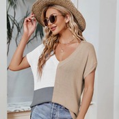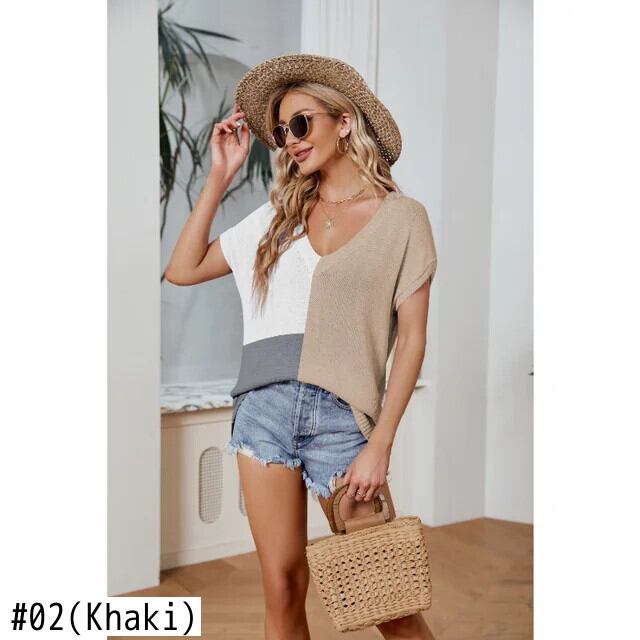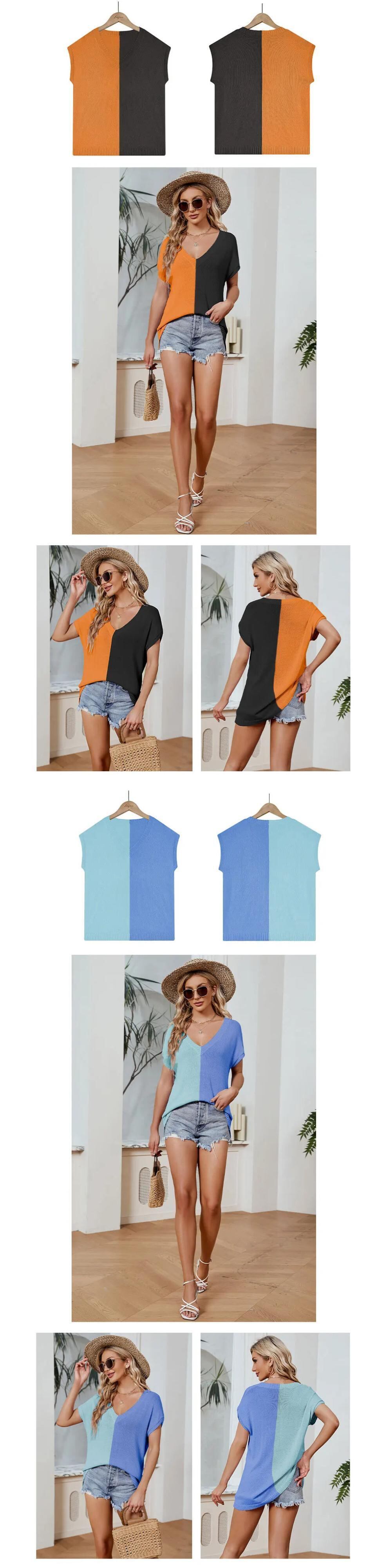 送料無料 2023 女性ニットベストルーズブラウス夏のオフィストップ女性のシャツショートバットスリーブ V ネックニットウェア 25883 サマー 夏物 Vネック 会社 学校 通勤や通学にも AE66565669582110728