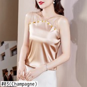 送料無料 2023 サテンの女性のシャツ夏の女性のノースリーブブラウスセクシーなパーティーシルクタンクトップ固体服 24902 サマー 夏物 ソリッドカラー AE665656673988586380