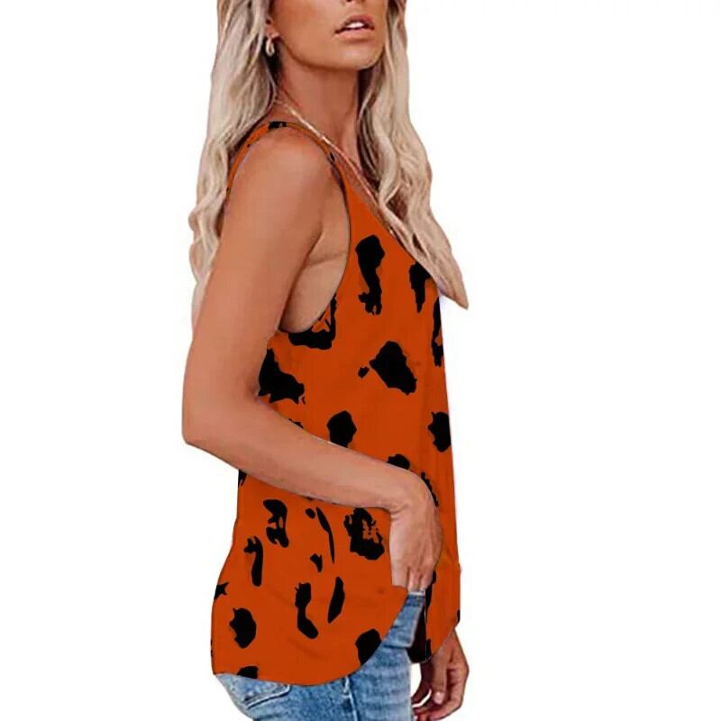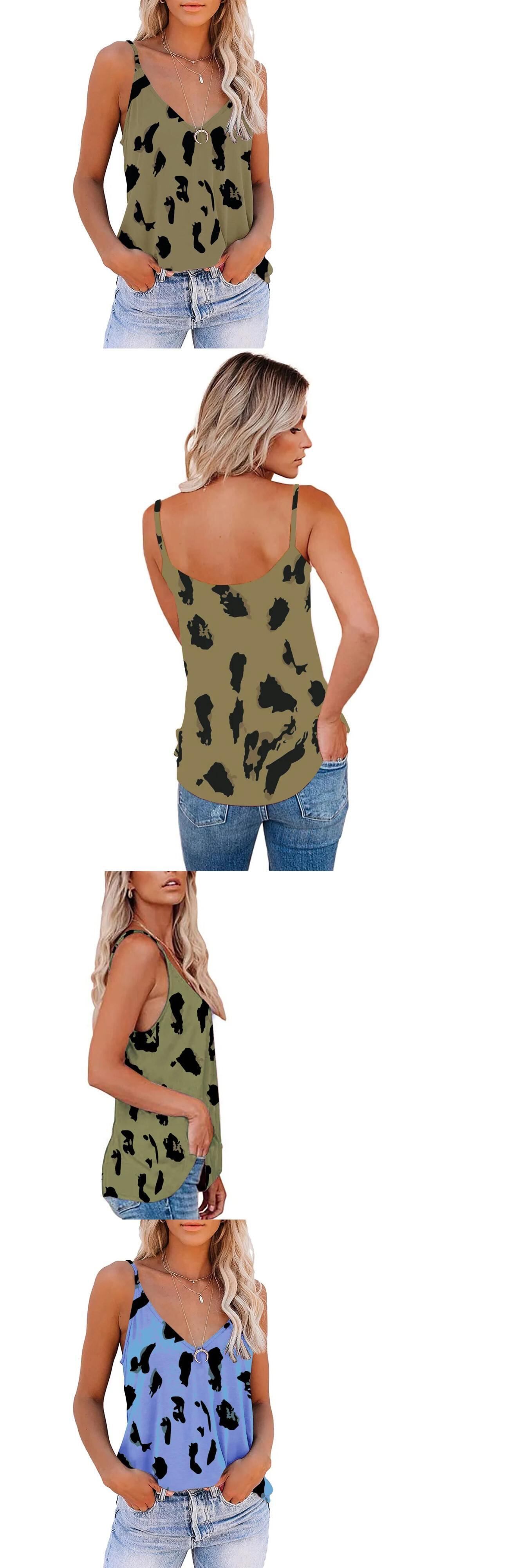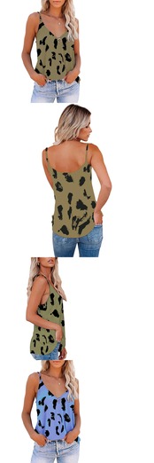 送料無料 2023 夏の女性のタンクトップセクシーなヒョウ柄ノースリーブシャツ V ネックルーズブラウス女性背中の開いた Tシャツ 24955 サマー 夏物 Vネック AE665656614969204379