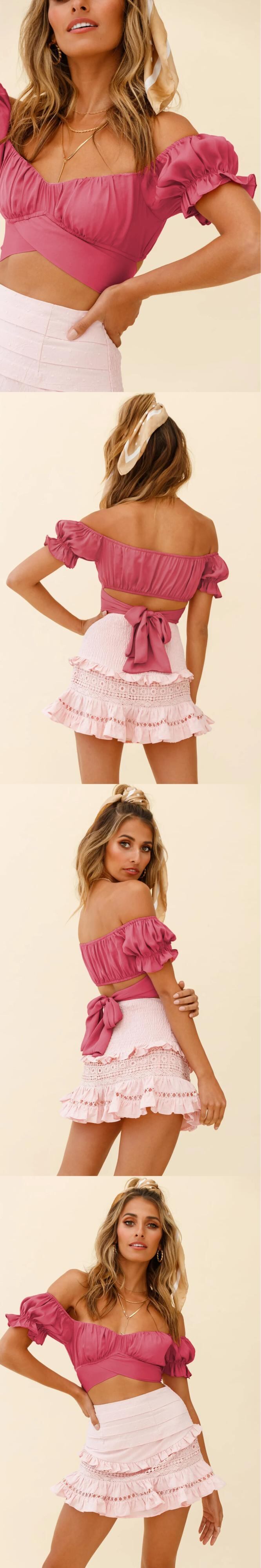 送料無料 2023 夏 Y2k クロップトップ女性フリル半袖 Tシャツセクシーな包帯ブラウスオフショルダーショート Tシャツスリムシャツ 25941 ハーフスリーブ ラッフル サマー 夏物 AE665656668515968733
