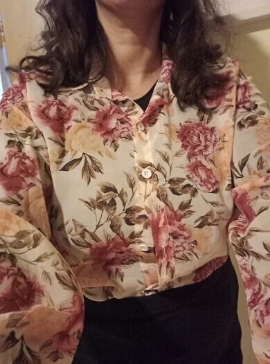送料無料 2023 夏の女性のフラワープリントシフォンブラウスロングランタンスリーブシャツ Vntage ボタンルーズターンダウン襟トップス 21537 サマー 夏物 フラワーデザイン AE665656682297558548