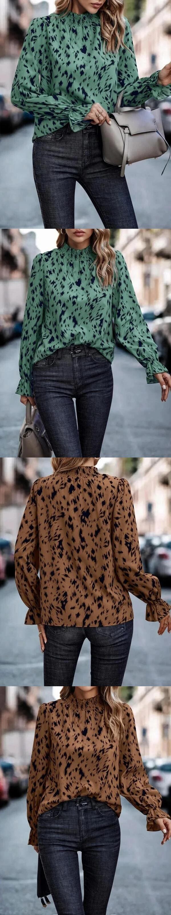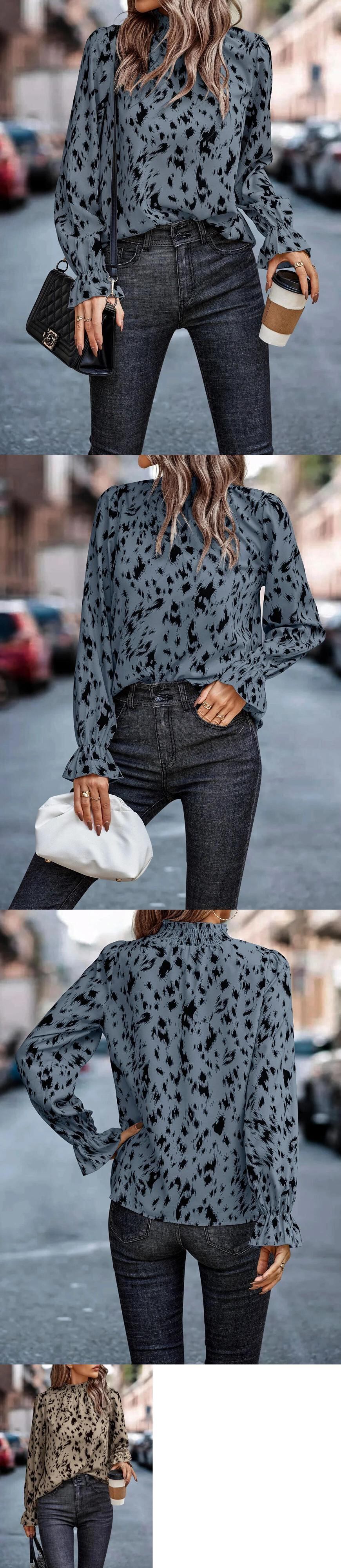 送料無料 2023 女性の服の気質ポリエステル長袖ハーフハイカラーブラウスゼブラプリントトップスルーズオフィスシャツ 24644 ロング 会社 学校 通勤や通学にも AE665656647520220717