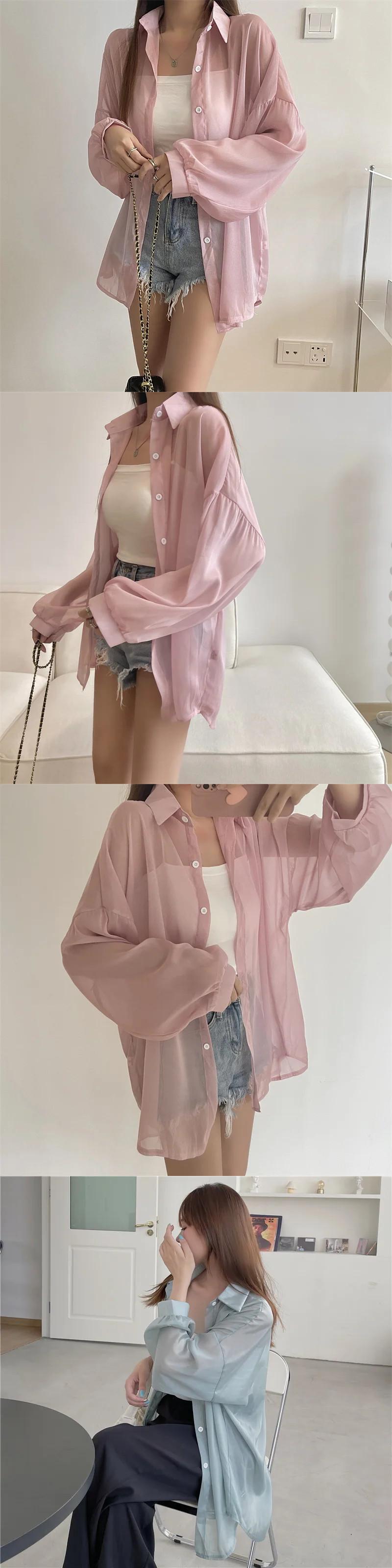送料無料 日焼け防止服女性ホリデービーチシャツシースルーシフォンブラウス夏トップス長袖 22209 ロング サマー 夏物 AE665656670266285440