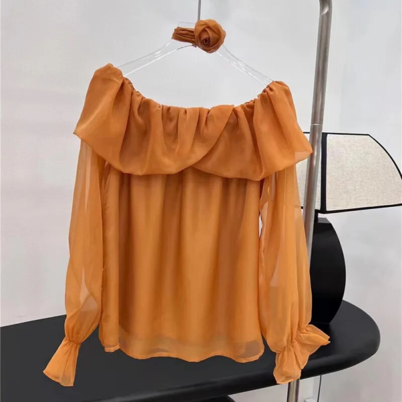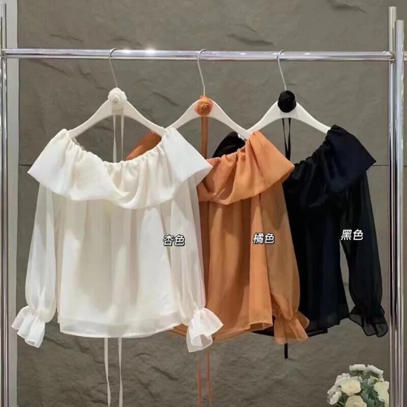 送料無料 2023 シースルーセクシーなオフショルダー長袖シフォンシャツとブラウス女性トップス春固体 26561 ロング スプリング 春物 ソリッドカラー AE665656686676835100