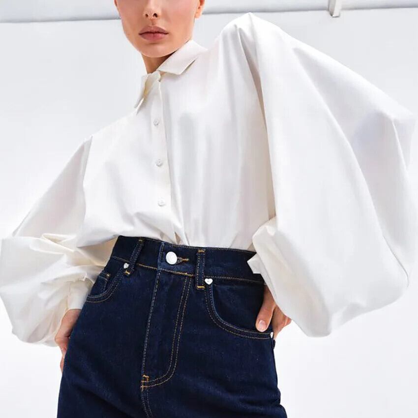 送料無料 ヴィンテージランタン長袖サテンブラウストップスルーズ白シャツオフィスレディ服女性 28690 ロング ホワイト ビンテージ 会社 学校 通勤や通学にも AE665656646617042209 | 女性の為の通販サイト-fashion navi