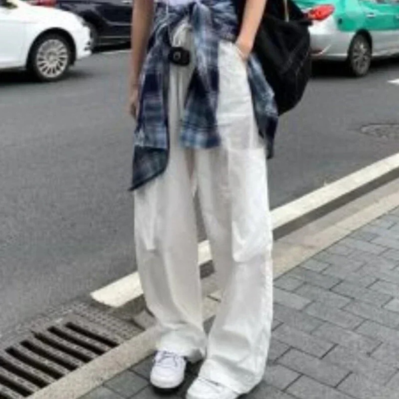 送料無料 ウエストカーゴパンツストリート巾着ワイドレッグパンツ女性ヴィンテージポケットヒップホップストレートズボン 29652 ワイドパンツ ビンテージ AE665656622396069721