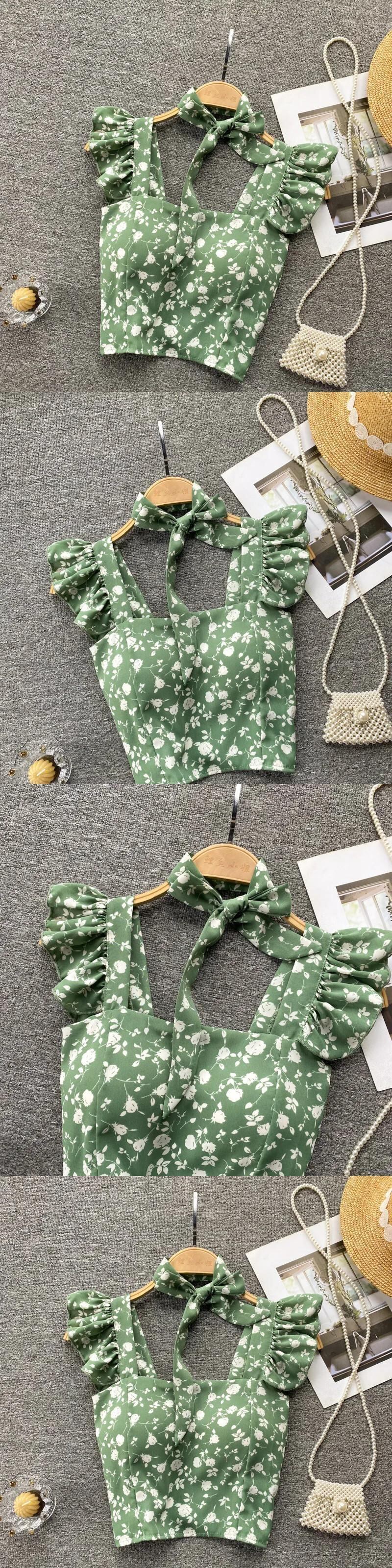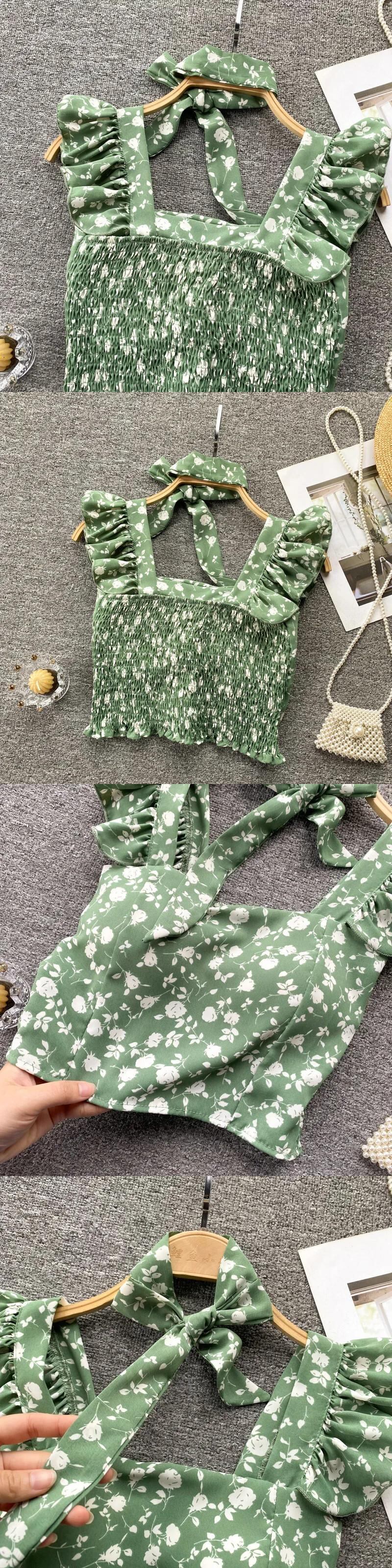 送料無料 夏甘いフリルセクシーなショートブラウススリム花柄ノースリーブシャツ 2023 休暇ベストトップ 25980 ラッフル 大人ガーリー スウィート キュート カジュアル サマー 夏物 AE665656641844981038