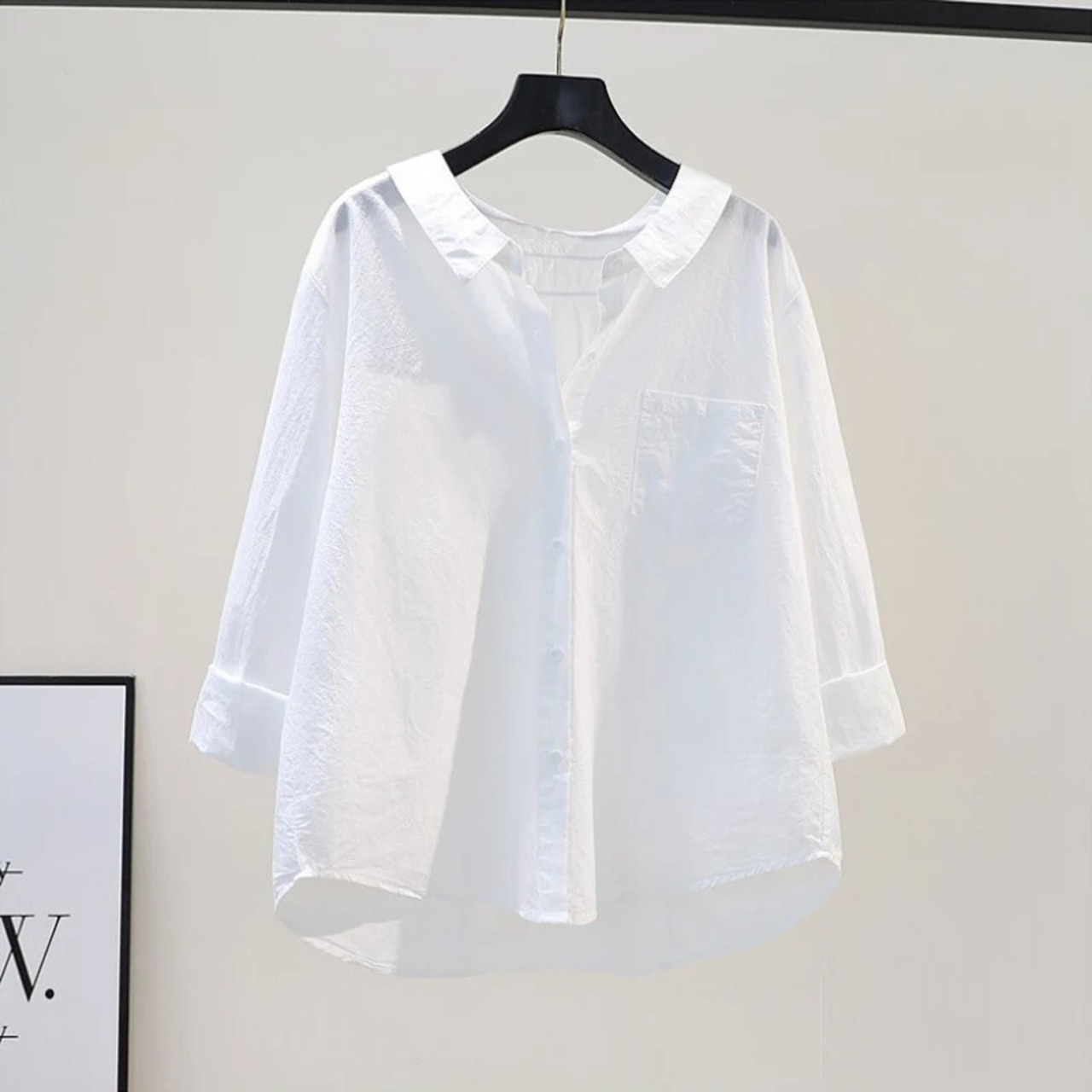 送料無料 秋ルーズトップス春長袖 2023 綿シャツ女性白ブラウスターンダウン襟 23907 ロング ホワイト コットン スプリング 春物 オータム 秋物 AE665656693557849708 | 女性の為の通販サイト-fashion navi