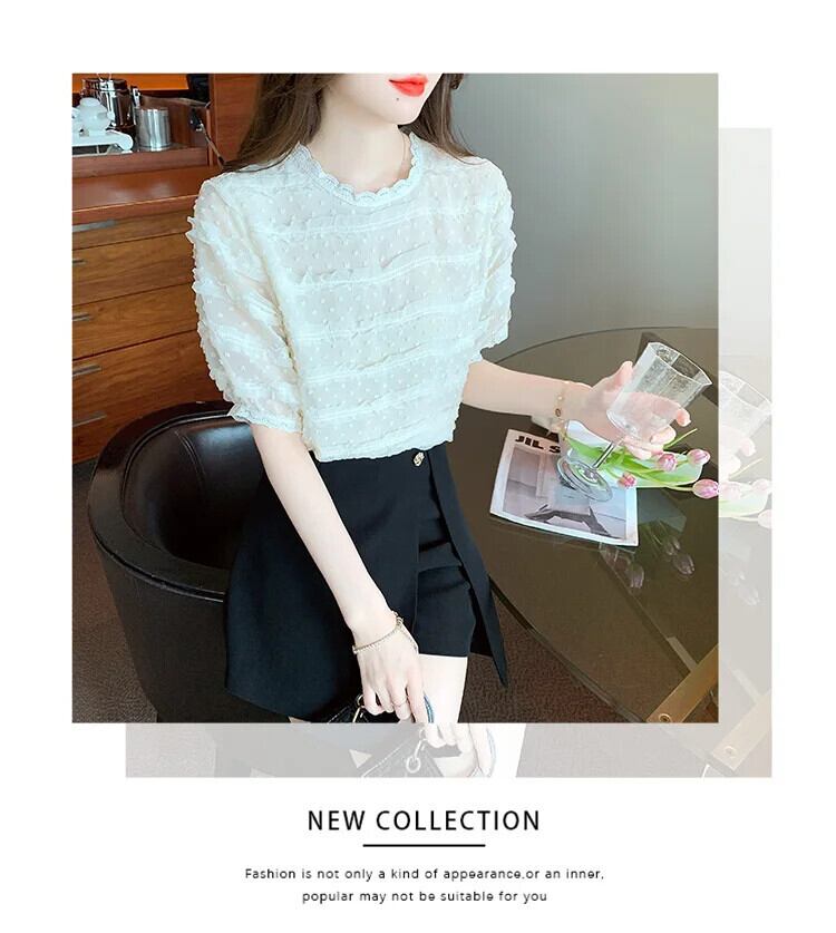 送料無料 甘い O ネックレースブラウス夏アプリコットパフ半袖シャツフレンチシックシフォントップ食用木菌服 27474 ショート ハーフスリーブ 大人ガーリー スウィート キュート カジュアル サマー 夏物 Oネック AE665656683479072302 | 女性の為の通販サイト-fashion navi