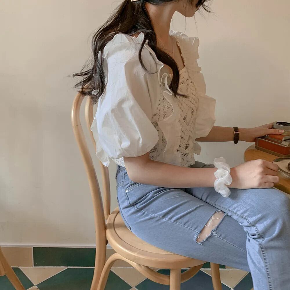 送料無料 レディース半袖ソリッドシャツ 2023 夏スクエアネックレースブラウス甘いかぎ針編みパフスリーブシャツ 27104 ショート ハーフスリーブ 大人ガーリー スウィート キュート カジュアル サマー 夏物 ソリッドカラー スクウェア AE665656624260523401 | 女性の為の通販サイト-fashion navi