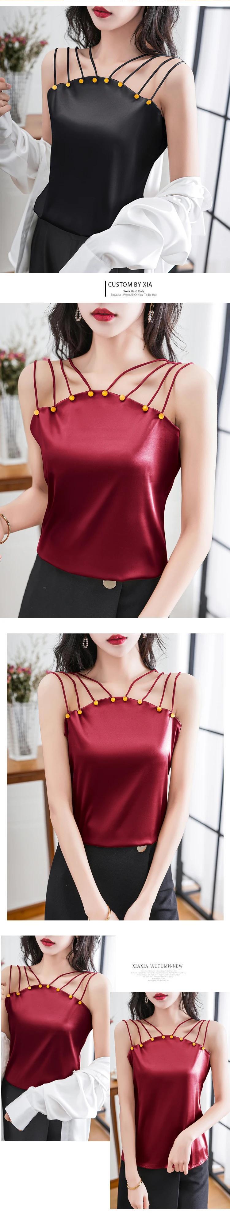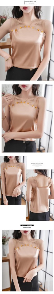 送料無料 2023 サテンキャミソール夏のセクシーなノースリーブビーズタンクトップ女性ルーズシックな背中の開いたシルクブラウス 25515 サマー 夏物 AE665656647662151141