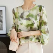 送料無料 ヴィンテージプリント軽くて薄いブラウス桑シルクシャツ夏服ルーズラウンドカラートップス女性 27202 サマー 夏物 ビンテージ AE665656633788380431 | 女性の為の通販サイト-fashion navi