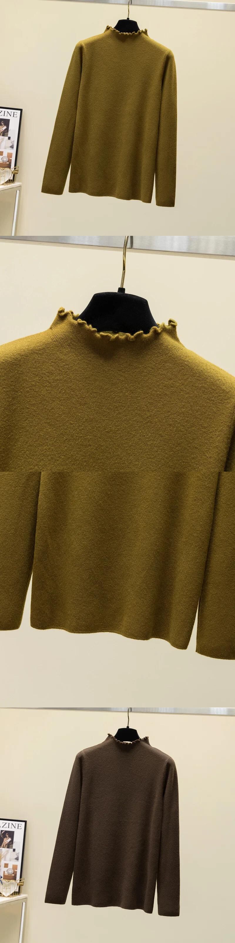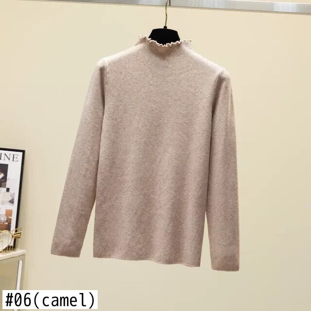 送料無料 シャーリングハーフタートルネック長袖トップス秋ソフトプルオーバーセーター女性ニットジャンパー基本服 23941 ロング オータム 秋物 AE665656647690224323