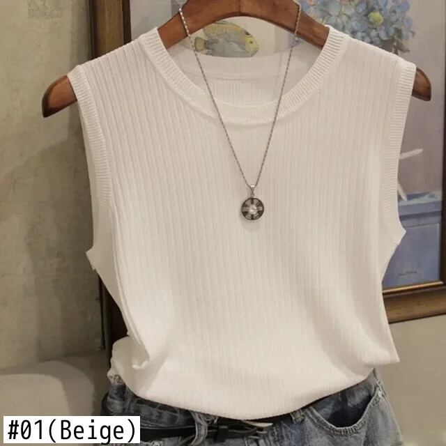 送料無料 シンプルなニットベスト女性トップ O ネックソリッドタンク 2024 夏ノースリーブ薄手ニット 4588 サマー 夏物 Oネック ソリッドカラー AE665656655630137786