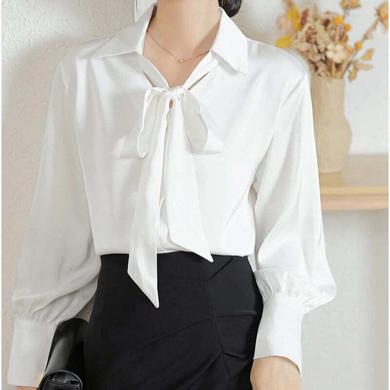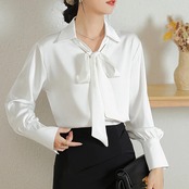 送料無料 秋のシンプルな長袖ブラウス気質オフィスレディトップス蝶ネクタイ V ネック白シャツ 28840 ロング ホワイト リボン オータム 秋物 Vネック 会社 学校 通勤や通学にも AE665656620129616231 | 女性の為の通販サイト-fashion navi