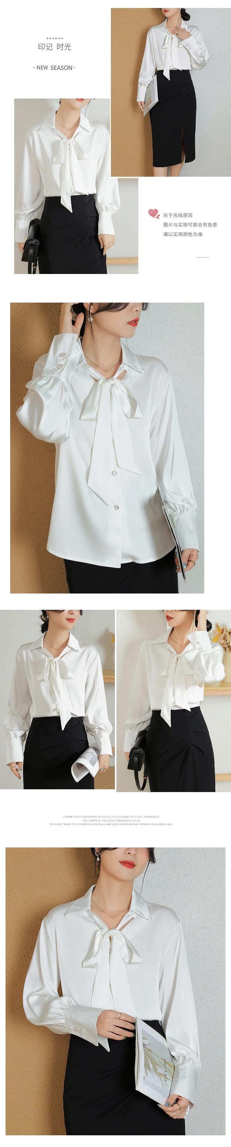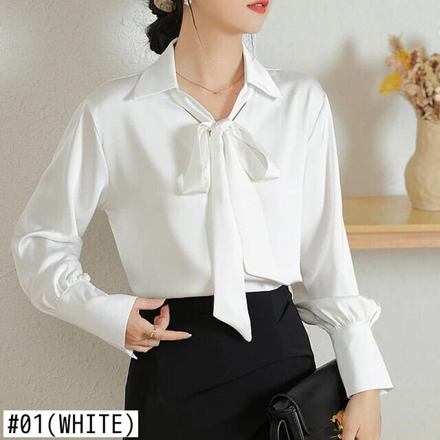 送料無料 秋のシンプルな長袖ブラウス気質オフィスレディトップス蝶ネクタイ V ネック白シャツ 28840 ロング ホワイト リボン オータム 秋物 Vネック 会社 学校 通勤や通学にも AE665656620129616231