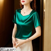 送料無料 2023 ルーズサテンシャツ夏半袖と青少年シルクブラウス女性春固体 V ネックトップ 25223 ショート ハーフスリーブ スプリング 春物 サマー 夏物 Vネック ソリッドカラー AE665656626861819681 | 女性の為の通販サイト-fashion navi