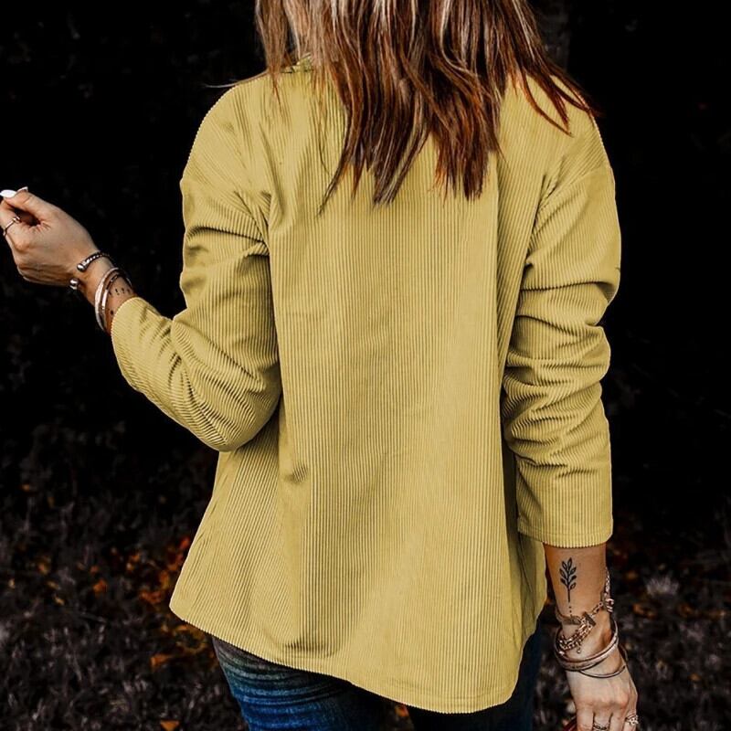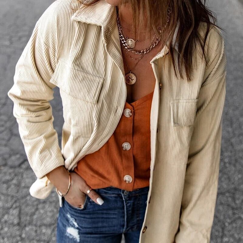 送料無料 秋のジャケットコート冬服女性コーデュロイ固体長袖ラペルブラウスストライプカーディガントップス 24070 ロング オータム 秋物 ウィンター 冬物 ソリッドカラー AE665656631233257220