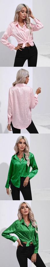 送料無料 女性長袖トップスボタンアップオフィスサテンシルクシャツ女性ヒョウ柄ブラウスルーズ 26106 ロング 会社 学校 通勤や通学にも AE665656691688238230