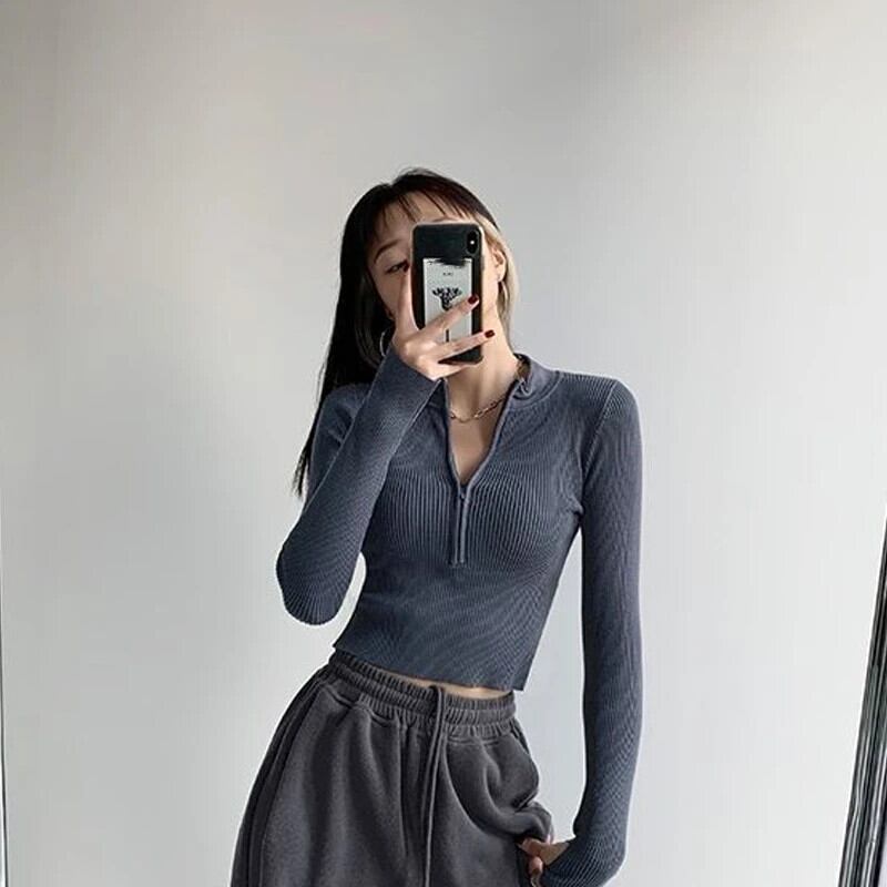 送料無料 2023 冬ネックジッパーニットセーター固体セクシーな女性ニットクロップドプルオーバートップ春 28448 スプリング 春物 ウィンター 冬物 ソリッドカラー AE665656673055253048