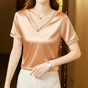 送料無料 2023 夏の女性オフィスレディソリッドブラウス半袖サテンシャツルーズシルクトップユース Tシャツ 25221 ショート ハーフスリーブ サマー 夏物 ソリッドカラー 会社 学校 通勤や通学にも AE665656674987718268