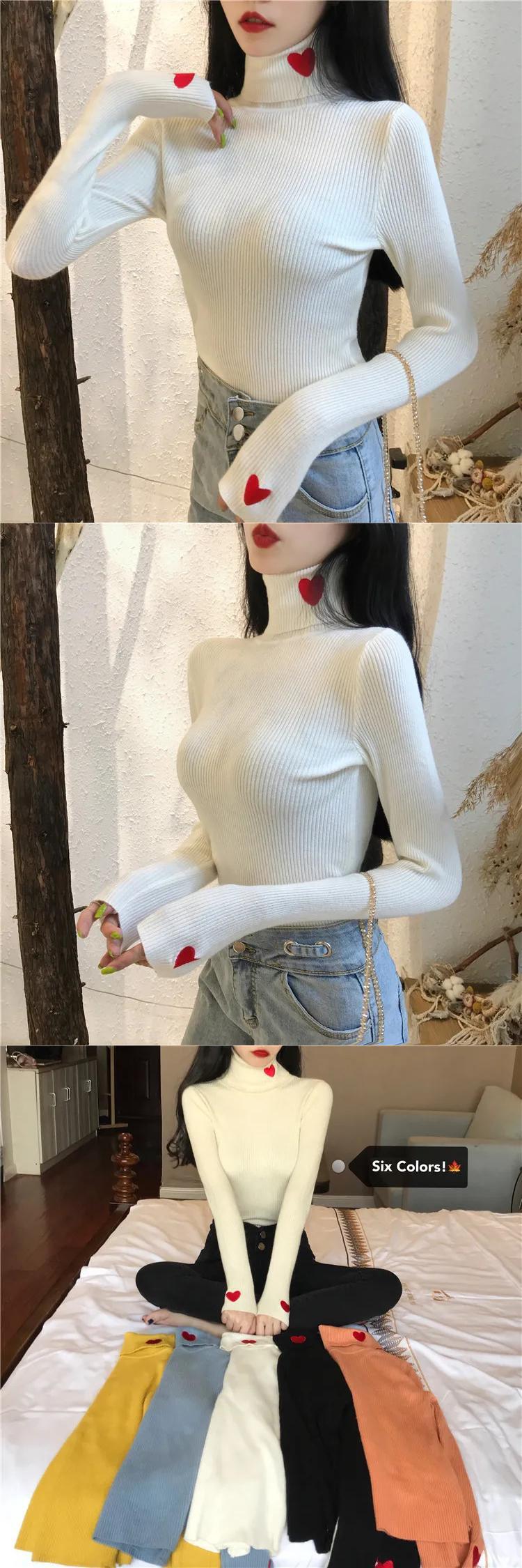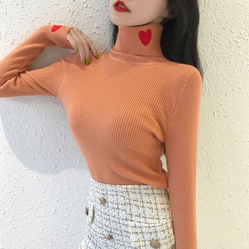 送料無料 女性固体長袖スリムレディプルオーバー 2023 冬オフィスレディ愛刺繍タートルネックセータートップ 29049 ロング ウィンター 冬物 ソリッドカラー 会社 学校 通勤や通学にも AE665656627812486453