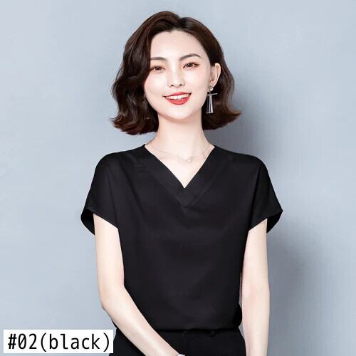 送料無料 シルク半袖ブラウス女性 2023 ソリッドカラー底入れ女性のサテンシャツオフィスレディスタイル 10297 ショート ハーフスリーブ 会社 学校 通勤や通学にも AE665656686260038577