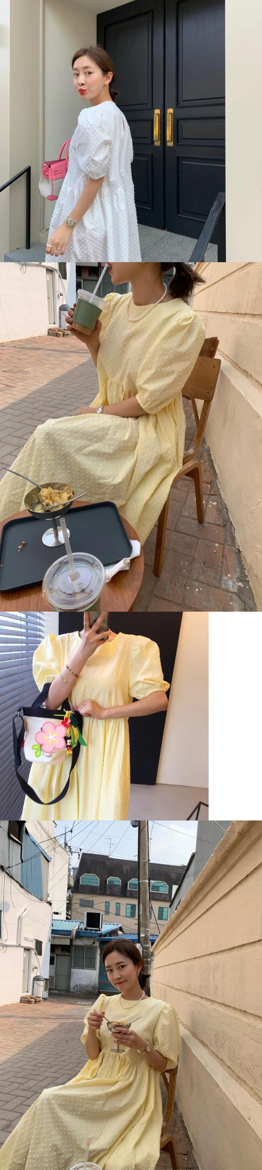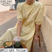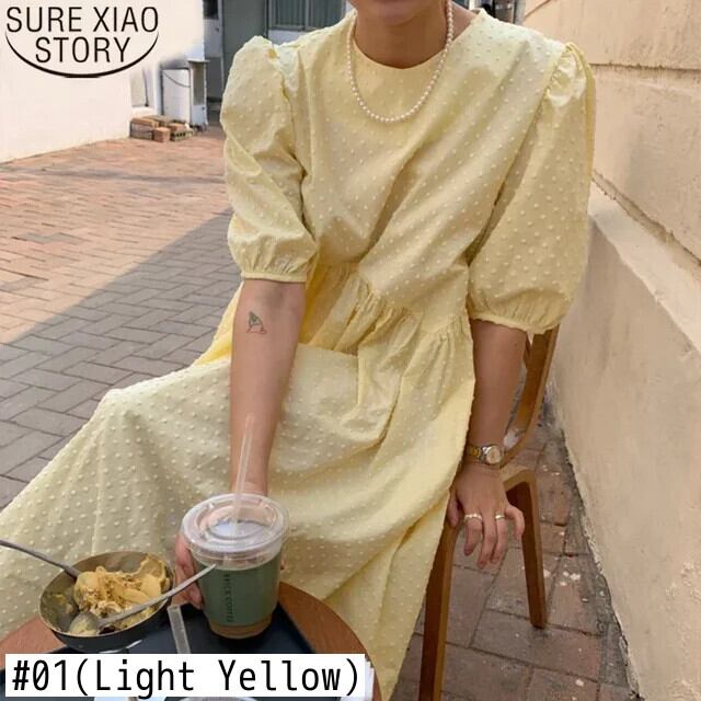 送料無料 2024 夏の女性のロングドレス O ネックパフスリーブオーバーサイズドットドレスルーズ Vestidos 9941 サマー 夏物 Oネック AE665656615569741290