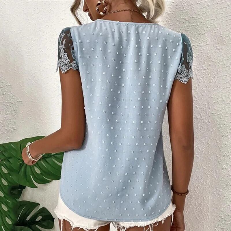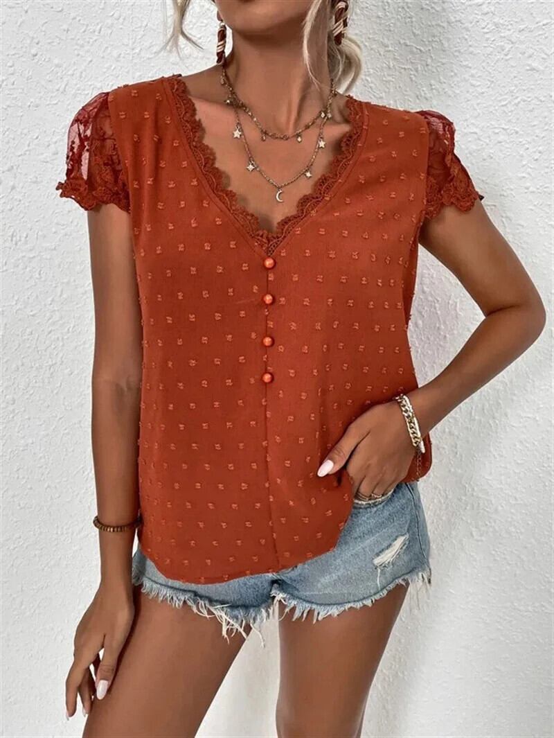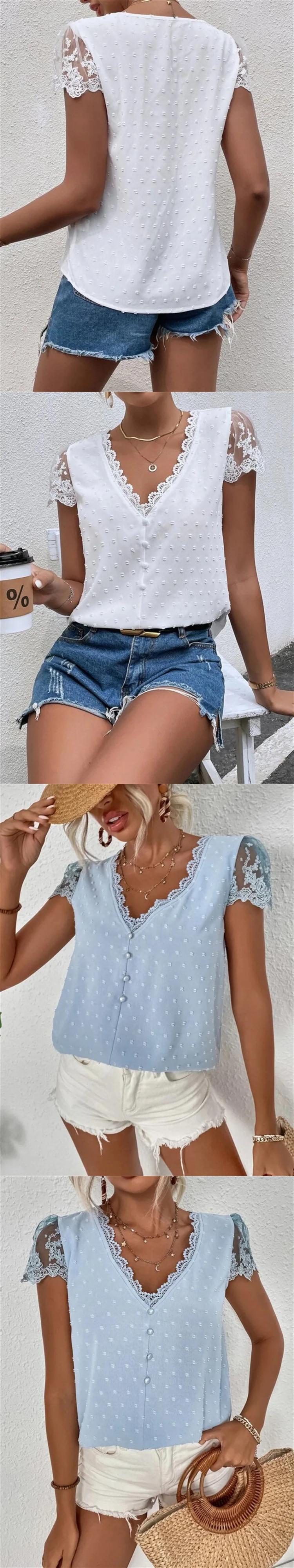 送料無料 夏 V ネックレース白シャツヴィンテージ固体服半袖ルーズ刺繍ブラウス女性トップス 25714 ショート ホワイト ハーフスリーブ サマー 夏物 Vネック ソリッドカラー ビンテージ AE66565662982587666