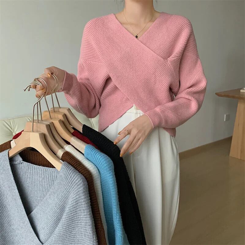 送料無料 オフィスレディプルオーバーセーター秋セクシーな V ネック女性ニットセーターヴィンテージ冬不規則なニット 28576 オータム 秋物 ウィンター 冬物 Vネック ビンテージ 会社 学校 通勤や通学にも AE665656685052426241
