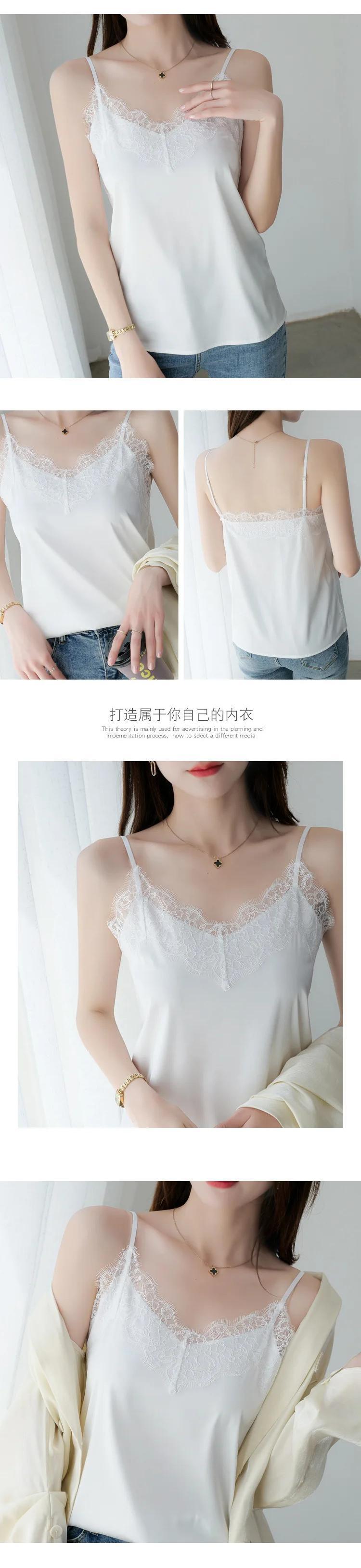 送料無料 アンドユースブラウス女性レースセクシーなシルクトップ夏シックな固体シャツ V ネック背中の開いたサテンキャミソール 25451 サマー 夏物 Vネック ソリッドカラー AE665656620016656161