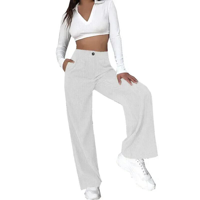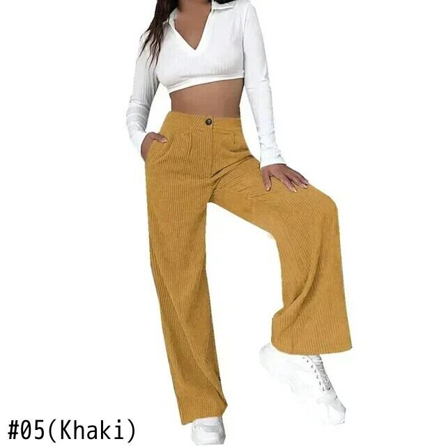 送料無料 秋服ウエストポケットコーデュロイパンツ女性ストレートズボンヴィンテージルーズパンツ固体パンタロン 24398 オータム 秋物 ソリッドカラー ビンテージ AE665656694884414950
