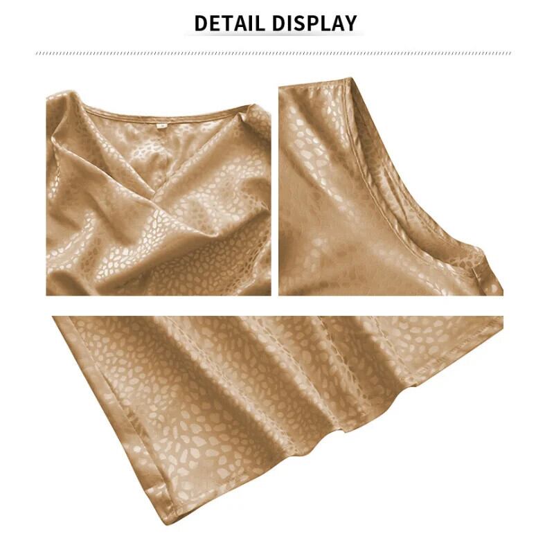 送料無料 2023 ヒョウスイングネック固体シャツ夏シックなノースリーブサテンブラウス女性ルーズトップ 25459 サマー 夏物 ソリッドカラー AE665656680179577008