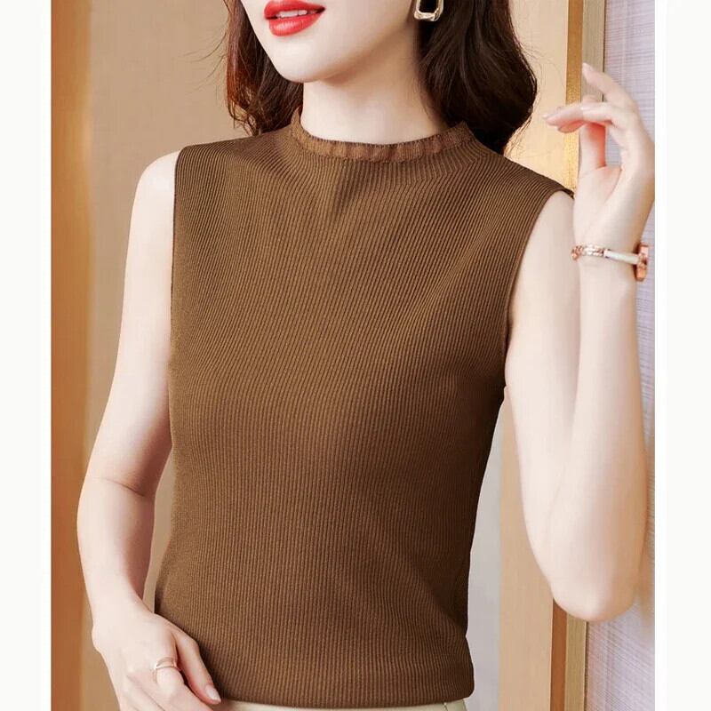 送料無料 ノースリーブベストブラウス春夏ニット女性固体アイスシルクタンクトップ女性 25241 スプリング 春物 サマー 夏物 ソリッドカラー AE665656625091688534